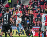 České Budějovice mají letošní sezonu rozjetou velice slušně. Před 26. kolem jim v tabulce patřilo sedmé místo, od konce února se vezly na vlně neporazitelnosti a pohledným a účinným fotbalem se chtěly prezentovat také v Edenu. Do zápasu ale lépe vstoupila Slavia, kontrolovala hru, soupeři příliš výpadů nedovolovala a hned v 10. minutě se mohla postarat o úvodní branku. Centr, ruka obránce Dynama, penalta. Všechno vypadalo jednoznačně, po konzultaci s videem ale sudí rozhodl o tom, že k nedovolené hře došlo mimo pokutové území. Hosté si tak mohli oddechnout.