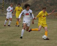 Už první minuty naznačily, že překonání příbramské obrany nebude v teplém odpoledni žádnou pohodovou záležitostí. Už ve 4. minutě musel sice hostující brankář Macho likvidovat těžkou ránu, ale o několik okamžiků později už Příbramští naznačili, že dokáží zahrozit i v útoku. To Šlapák hlavičkou zády k brance řádně vyděsil gólmana Skálu. Počáteční nápor domácích nebyl nijak výrazný, a když v brance hostí neskončil ani dobře točený přímý kop v 17. minutě, přenesla se hra mezi obě šestnáctky. Hosté dobře bránili a domácí byli stejně bezradní jako před třemi týdny proti stejnému soupeři jejich dospělí kolegové.Do zajímavé střelecké pozice se sice po půlhodině dostal Kladrubský, ale zbrkle vypálil nad branku.