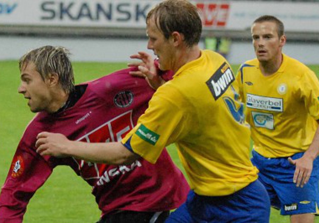 Hráče obou mužstev uvítalo se vstupem na trávník velice mrazivé počasí, kdy byli vystaveni dokonce i sněhovým vločkám. Spolu s nimi se z nebe snesla zakrátko i radost hostů. První jejich útok zatáhl po pravé straně Plocek, jenž našel na malém vápně Mrkvičku a ten míč ještě posunul za sebe, kde nabíhající Jaroslav Černý neměl problém trefit prázdnou branku – 0:1. Jihočeši málem zopakovali úvodní smršť jako proti Baníku v minulém kole. Hned ve 4. min. se totiž sám na brankáře Slavíka řítil Radzinevičius, ale vhodný okamžik ke střele promeškal a stíhající jej Sabou mu míč ukopl. Drtivý nástup Jihočechů pak otupil Pavel Verbíř, když jeho centr až od postranní čáry propadl za Kučerova záda – 1:1. Oba brankáři si tak neměli naprosto co závidět. Na míč si shodně poprvé sáhli až když ho vyndávali z vlastní brány. Hostující Kučera si však ostřejší zákrok připsal při střele Ljevakoviče z velkého vápna, která rozehřála jeho zkřehlé rukavice. Na druhé straně v dobré pozici Vozábal nezpracoval míč, což ale hned napravil. Ve 12. minutě zpětnou přihrávkou ve spolupráci s Hílkem oslovil Václava Mrkvičku a ten se parádní střelou z dvaceti metrů trefil přesně k pravé tyči – 1:2. Strakovým svěřencům se dařila lépe kombinace a po jedné z několika hezkých akcí Černého se z ochozů teplického stadionu ozval pískot, jenž směřoval k domácím borcům. Ti si tento projev nespokojenosti fanoušků zřejmě vzali k srdci a ve 31. minutě jim na usmíření darovali vyrovnávací gól. Nejdříve sice na Kučerovi ztroskotal Fenin, ale Pavel Verbíř následně balon potáhl skrz celým vápnem a našel si místo pro zakončení – 2:2. Tou dobou byl na hřišti dvě minuty již i střídající Rosa, který nahradil nejistého Koukala. Zachumlaní diváci v čepicích a šálách se tak fotbalem rozhodně nenudili. Další vzrušující moment sledovali na hranici domácího vápna, kde byl faulován českobudějovický záložník Černý. Podle názoru Jihočechů již uvnitř velkého čtverce, ale sudí nedovelený zákrok posoudil ještě před ním. S následnou exekucí přímého kopu si Slavík poradil. V nastaveném čase však Strakův tým inkasoval těžkou ránu. Rutinér Pavel Verbíř totiž dokončil své dílo a již do přestávky zkompletoval svůj hattrick v utkání. Sám na malém vápně prokázal svou šikovnost a kličkou do pravé strany vydláždil cestu k prvnímu teplickému vedení – 3:2. S okamžitou rozehrávkou Českobudějovických sudí Franěk ukončil první poločas, v němž vedle gólových hodů i rozdal hned sedm žlutých karet. Tři na domácí straně, čtyři na hostující. I přes velice slibný vstup do utkání odcházeli do kabin Jihočeši mírně zarmouceni.